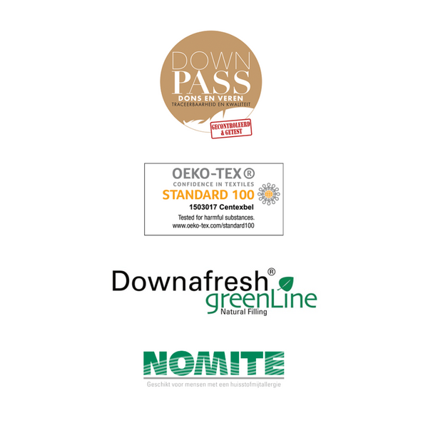 Sommige donsdekbedden zijn anti-allergisch behandeld. Let altijd op het Nomite-label voor huisstofmijtbestendigheid.