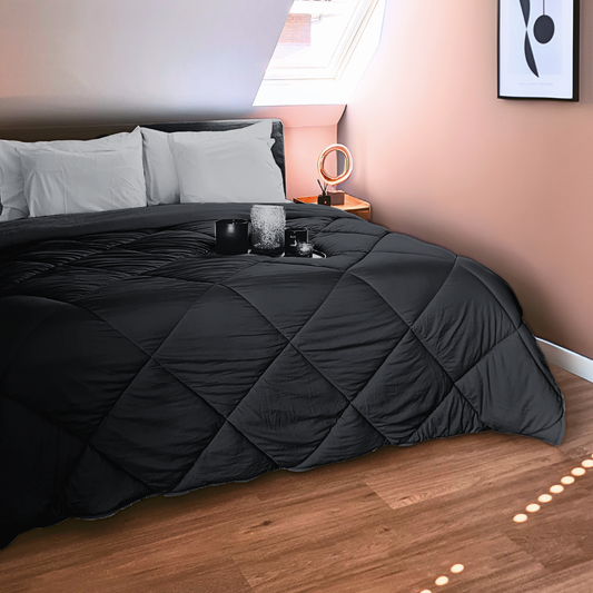 Dekbed Zonder Overtrek 4-Seizoen Mat Satijn Zwart