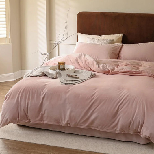 Dekbedovertrek set Velvet Border Chai Latte Pink