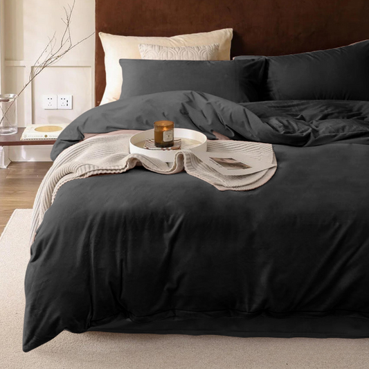 1+1 GratisDekbedovertrek set Velvet Jet Black