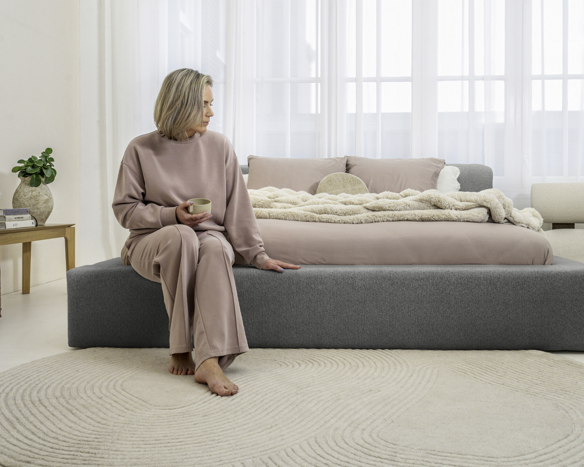 Het Adore Edira combineert de minimalistische schoonheid van Japandi-stijl met luxe materialen. De ademende meubel stof en de stevige lattenbodem zorgen voor een slaapervaring die zowel stijlvol als verkwikkend is.
