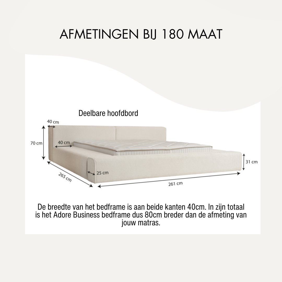 Wij opereren uitsluitend online via onze website, wat ons in staat stelt om de kosten te minimaliseren. Hierdoor kunnen we luxueuze boxsprings aanbieden tegen zeer scherpe prijzen.