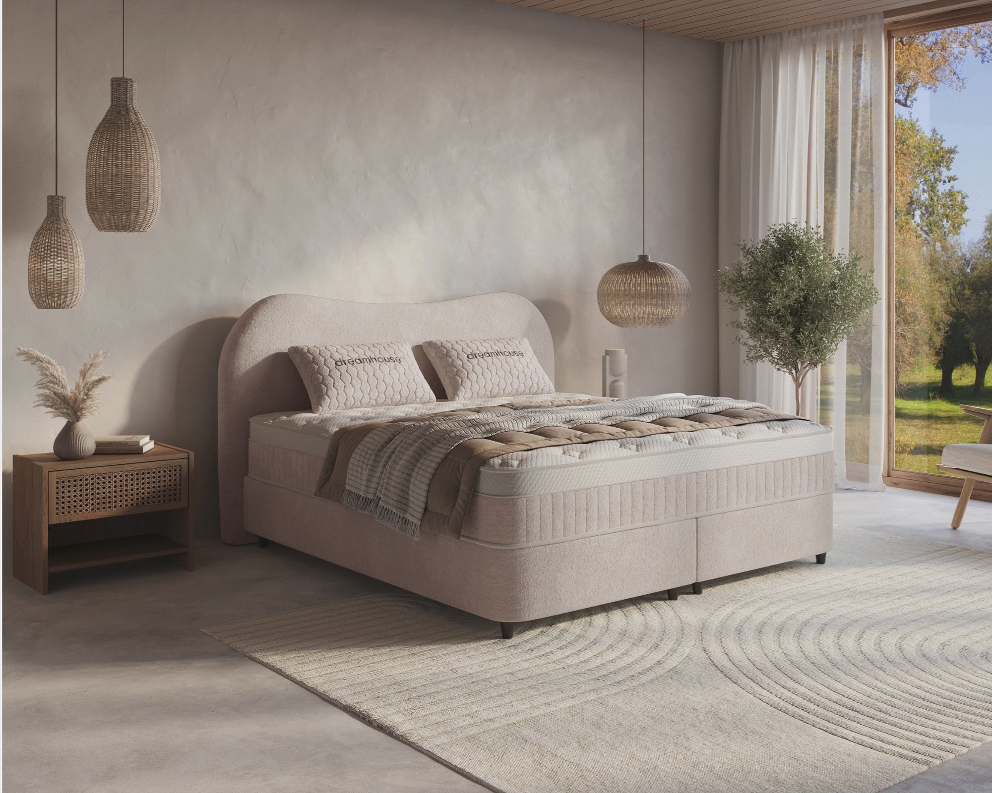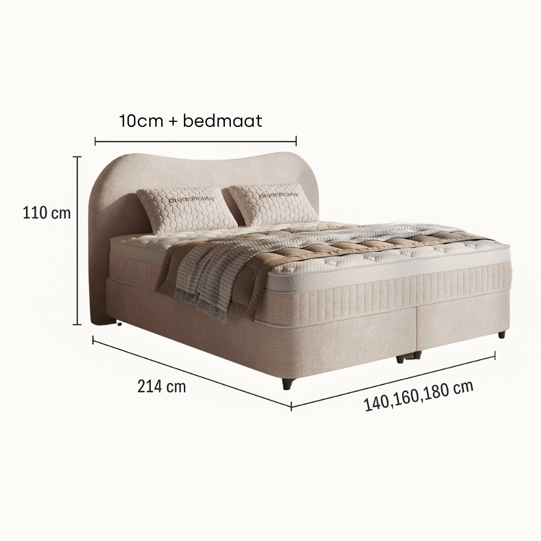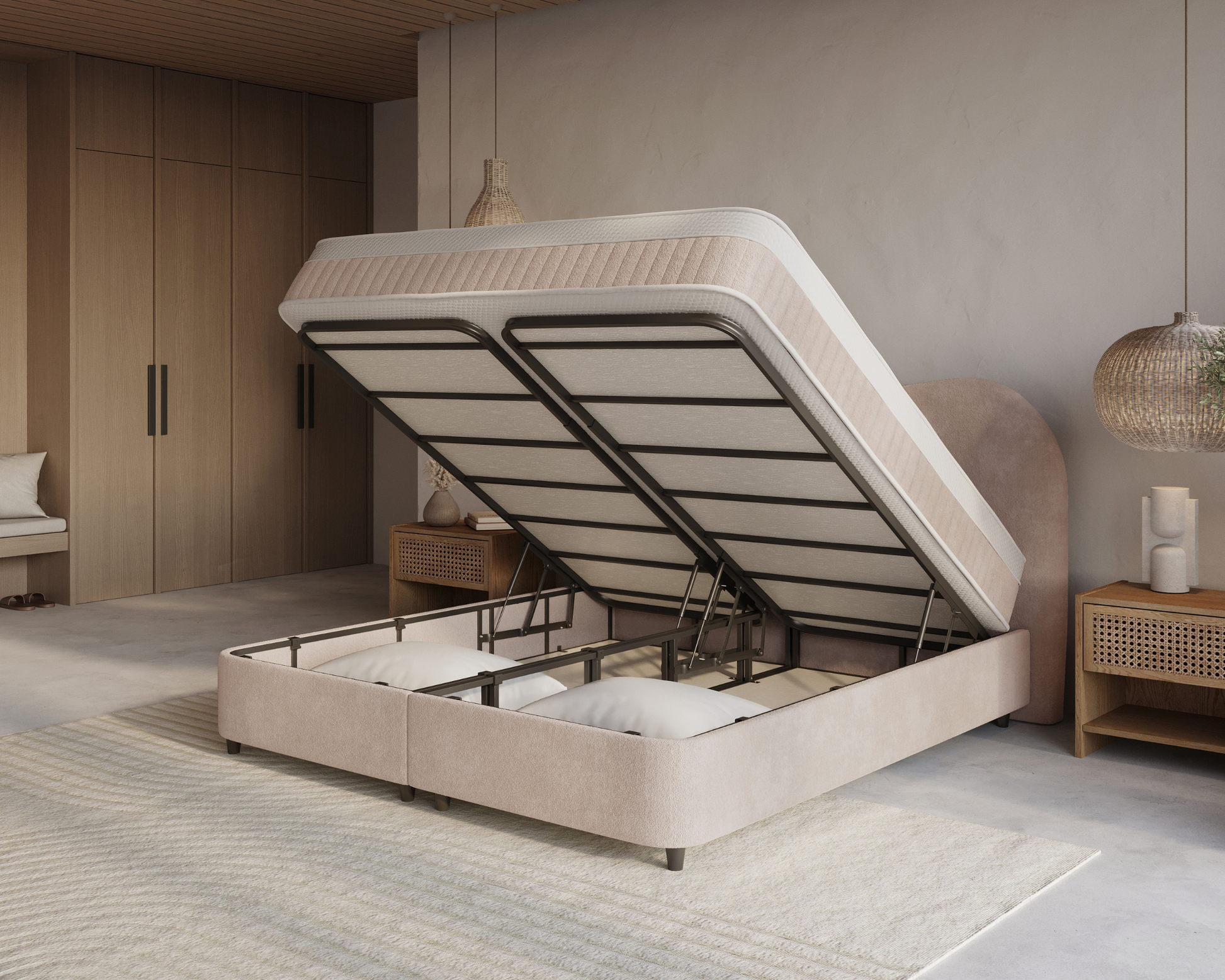 Arcus bed met Opbergruimte + Hybrid Pocket 500 Matras  - Nº06 - Beige