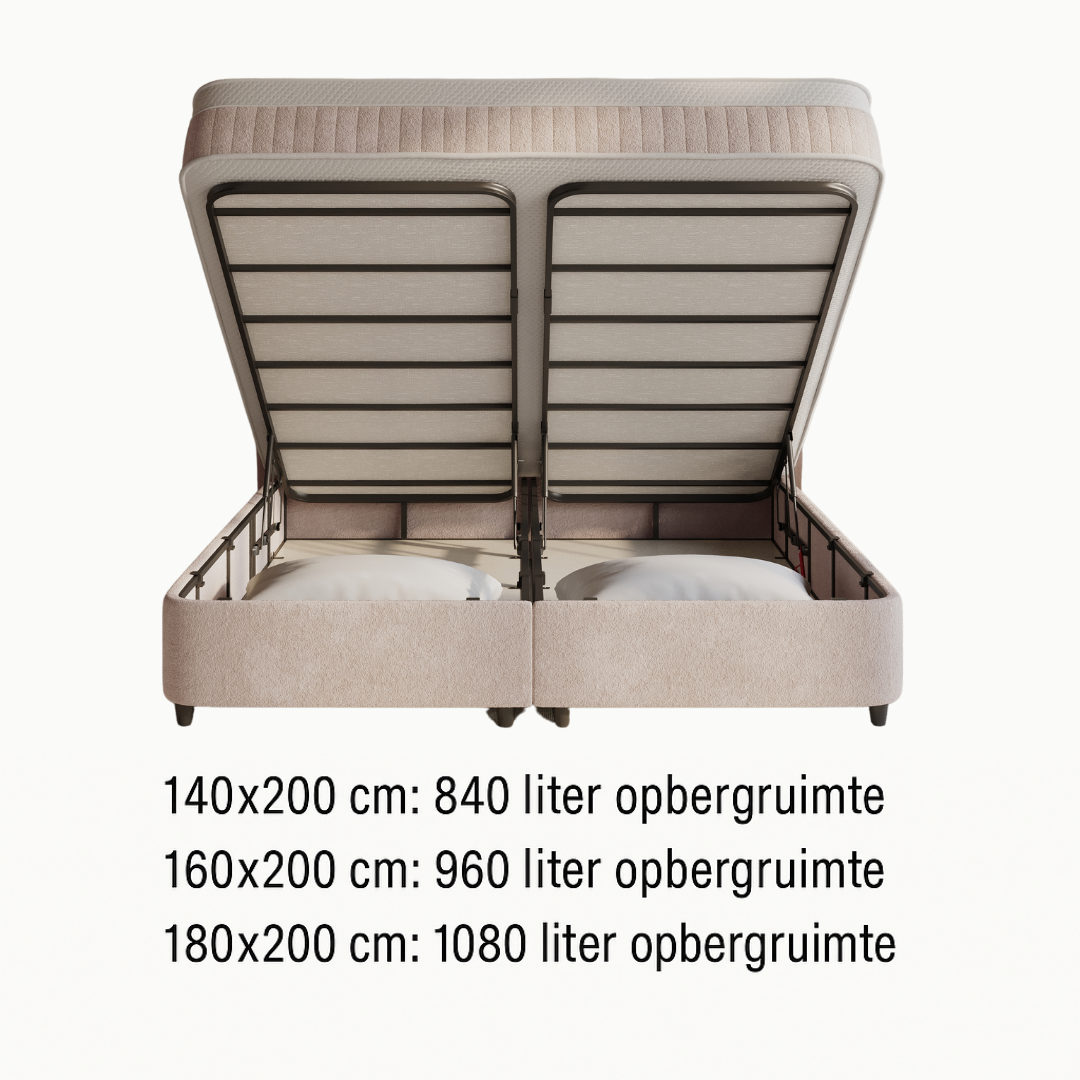 Arcus bed met Opbergruimte + Hybrid Pocket 500 Matras - Nº06 - Beige