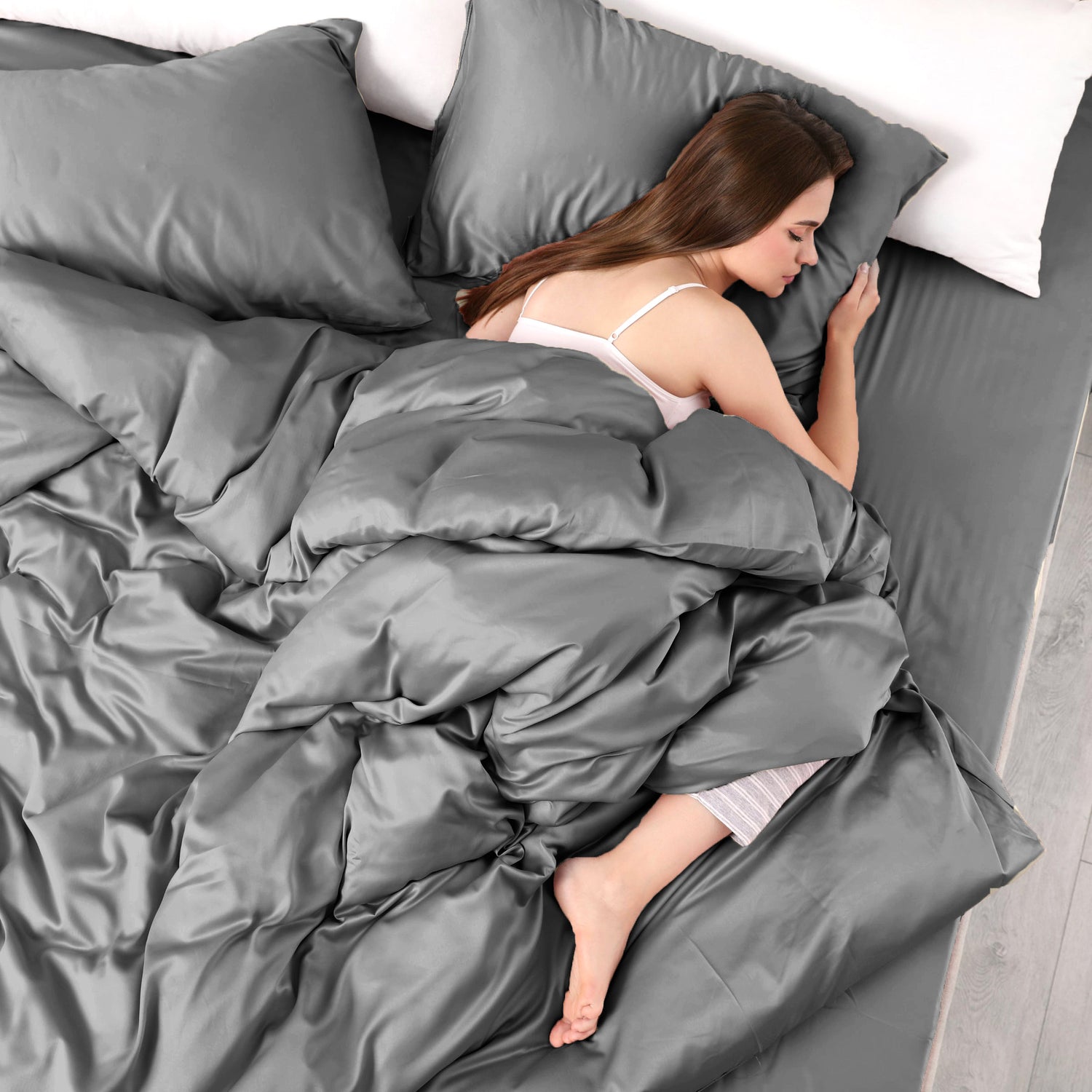 Ervaar ultiem comfort en een glad, luxueus gevoel met ons Satijnen Dekbedovertrek. Het helpt je gemakkelijker in slaap te vallen en zorgt voor een ononderbroken rust gedurende de hele nacht. Dankzij de combinatie van zachte satijnen stof en ademende eigenschappen, biedt het dekbedovertrek zowel verkoeling als comfort, perfect voor warme zomernachten.