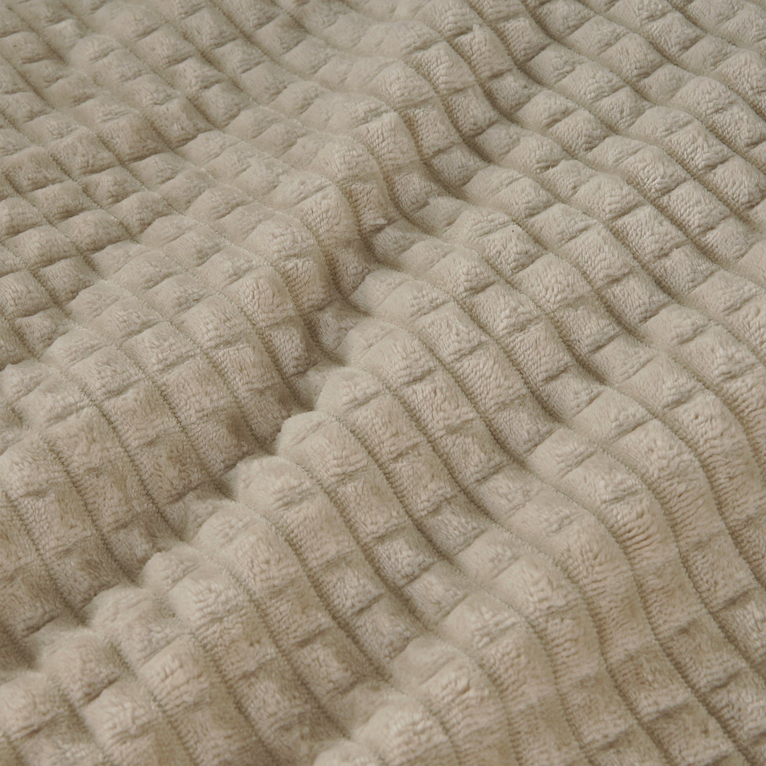 Stof: Bovenzijde 200 grams pluche, onderzijde 105 grams brushed microfibre