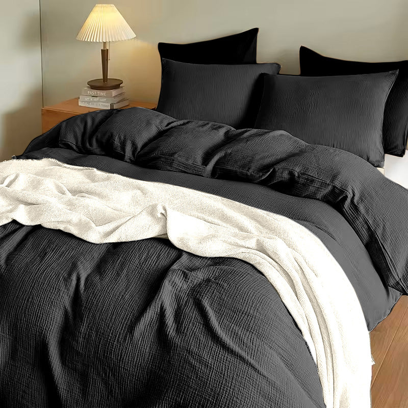 Dekbedovertrek set Katoen Mousseline 160TC zwart
