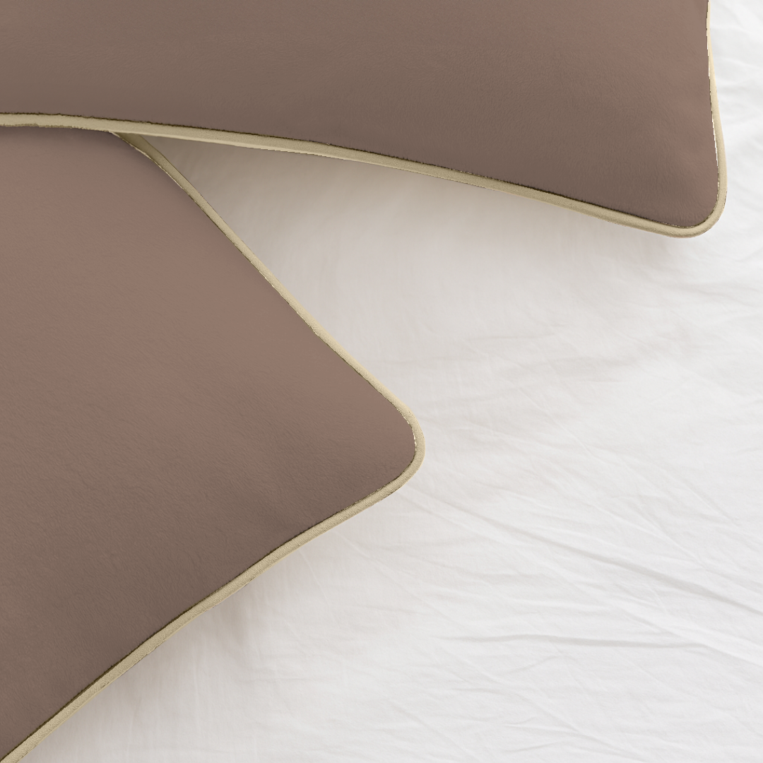 Kussenslopen Soft Fleece Flanel Taupe Grey met Pearl White bies 60x70 cm 2-pack